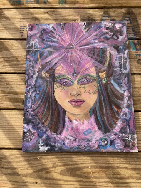 She places a beautiful tear drop shaped crystal crown, very small and elegant on my head, the teardrop hanging slightly above my third eye.