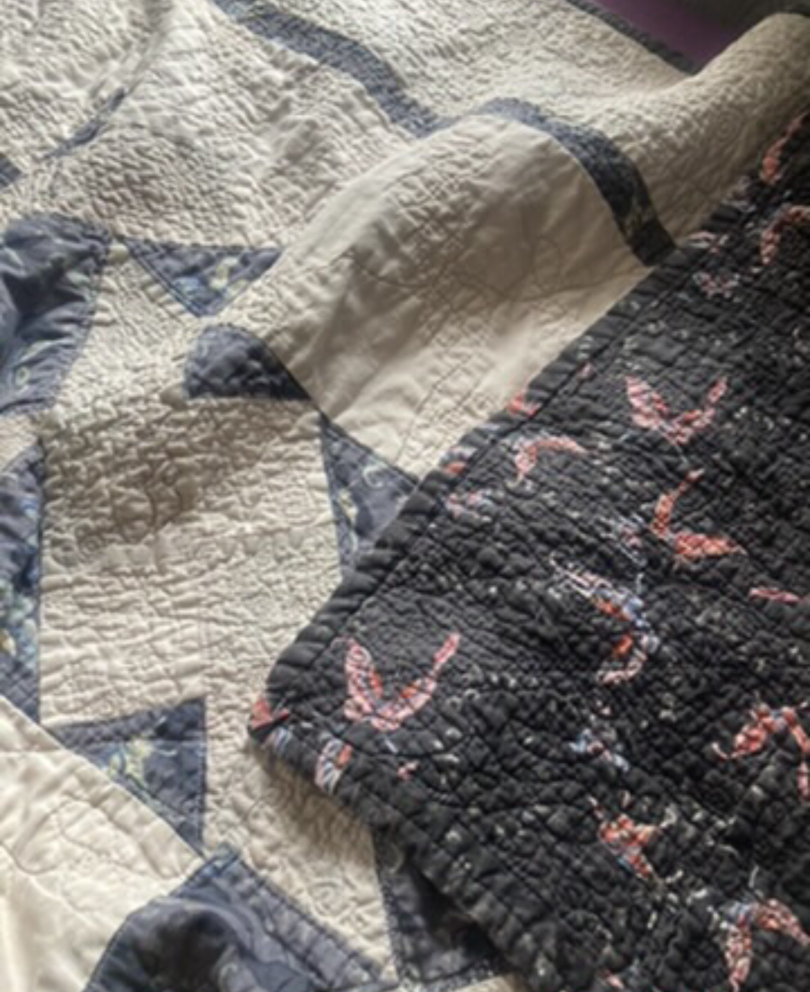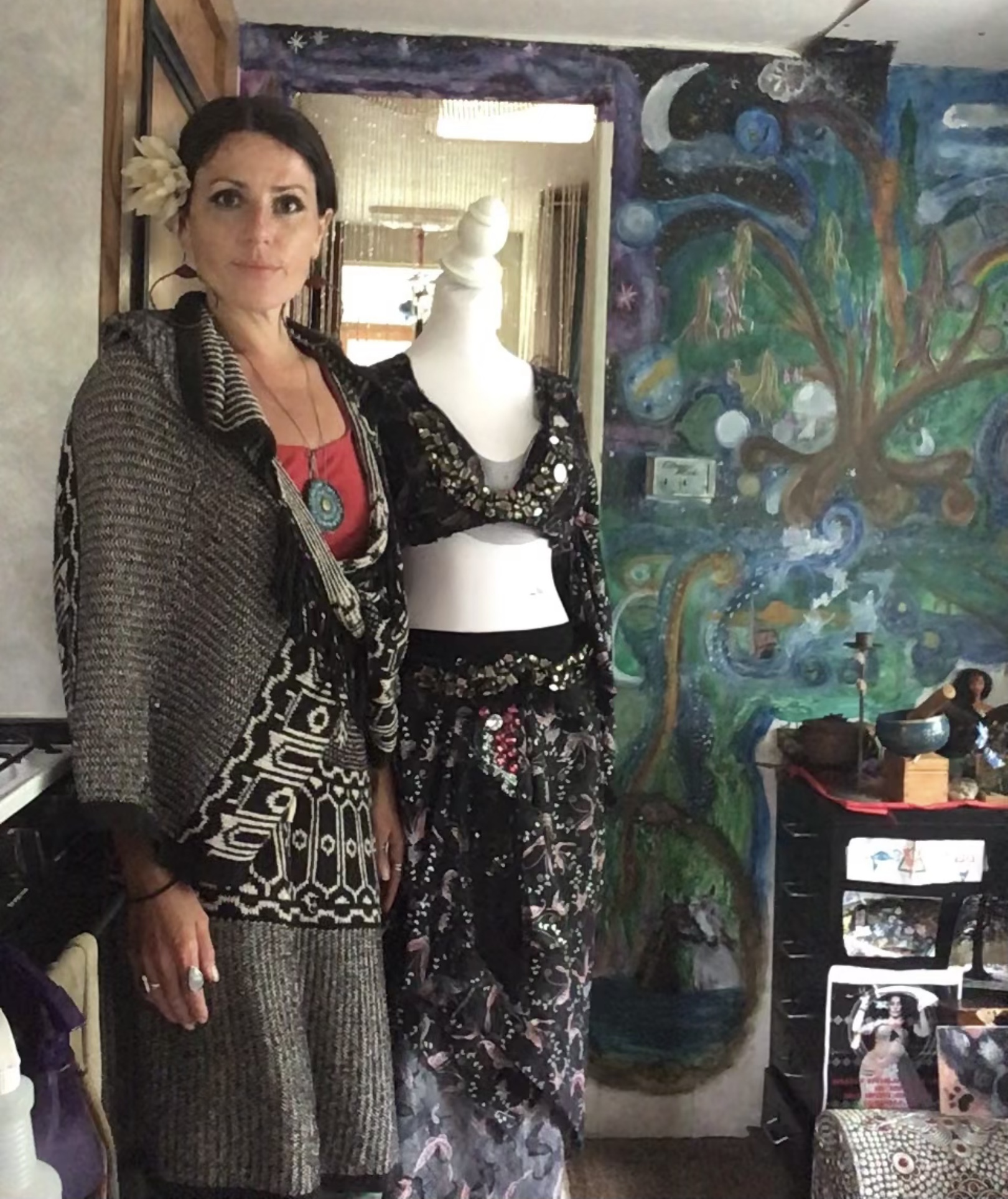 Also pictured is my belly dance costume, threaded with the same fabric used for my quilt.