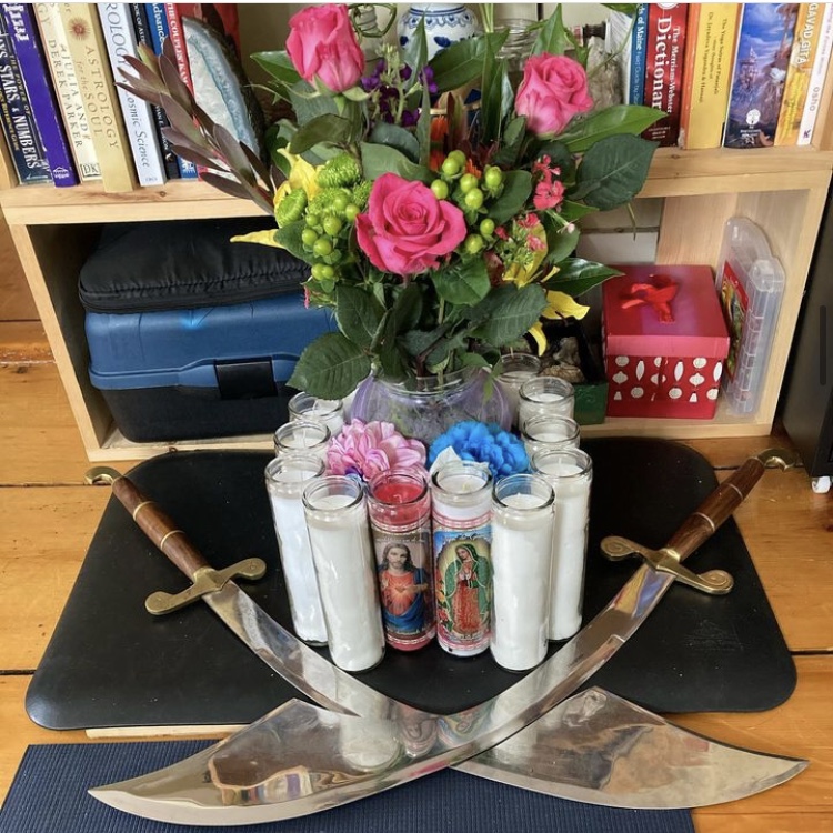 Pictured here is the candle spell alter from 2014. Also pictured is the sacred quilt that I Weaved into existence in 2015. I wove many words and incantations into it, focusing on love and protection. ✨????????????????My mother’s side of the family are seamstress and quilters among many other magickal attributes. When I say ‘WEAVER of the WEB OF CREATION’ I’m talking about cosmic creation and the intricate flow of life.